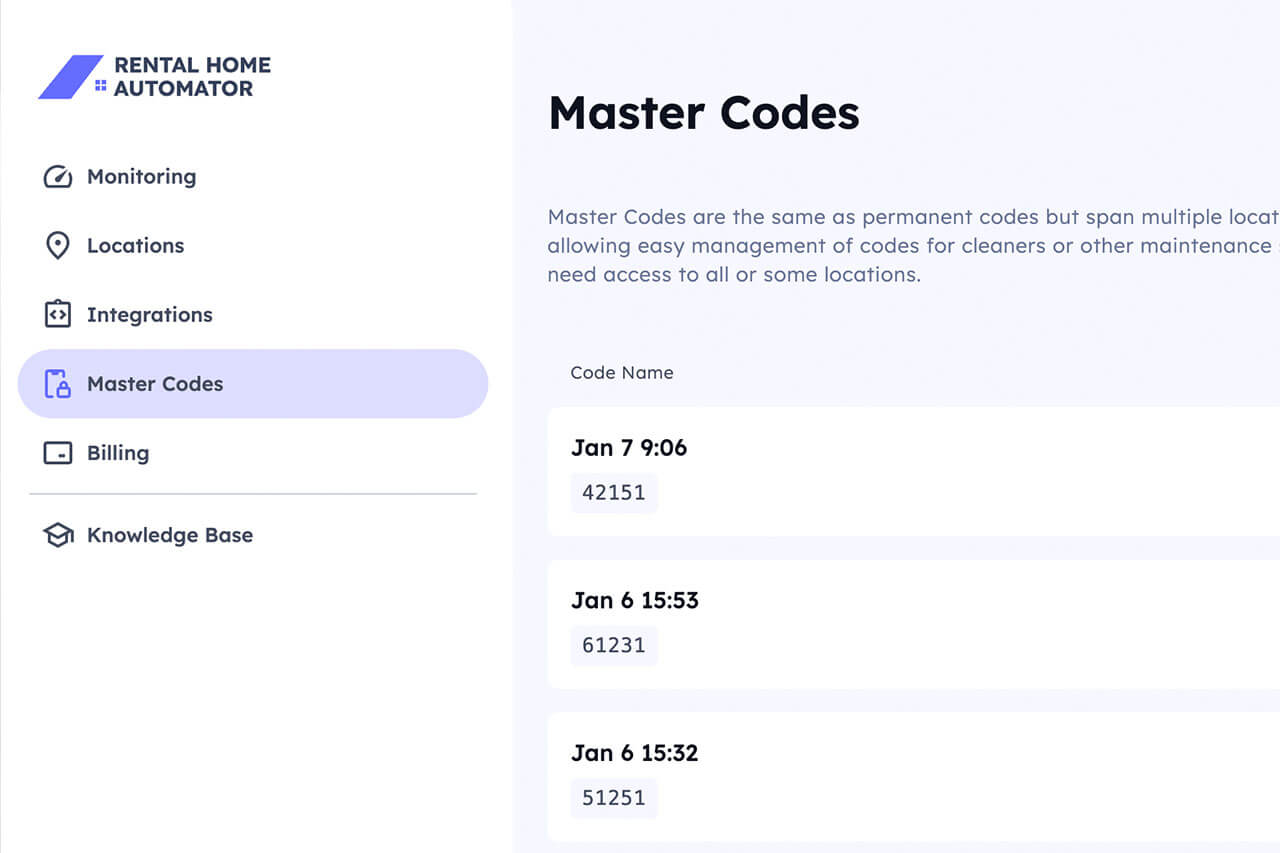 Master Door Codes make it easy to manage cleaning, maintenance, and owner access across all of your properties from one place. If you’re ready to stop managing the same lock codes over and over again, see how Rental Home Automator centralizes smart lock access at scale.